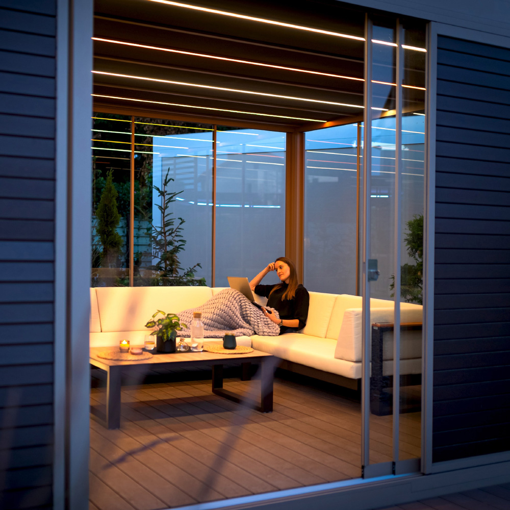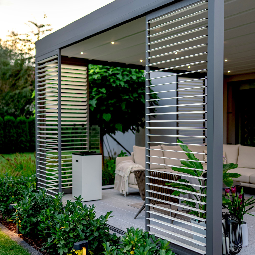 Unlike fabric awnings, our pergolas offer a permanent, intelligent design with adjustable water-proof roofs for total weather control.